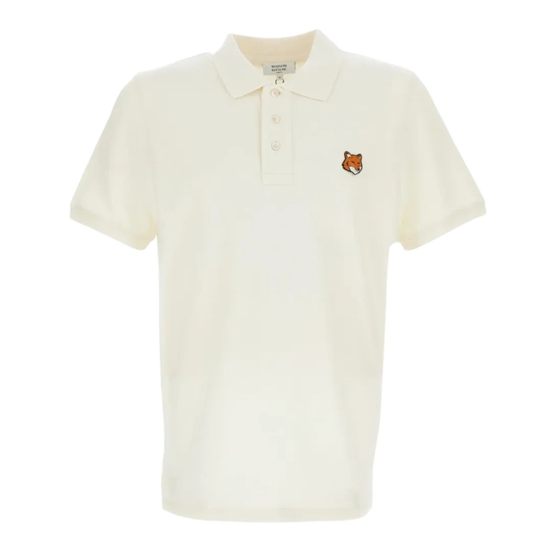 600081092OWT00L / PM00209KP0002/00/0063 - Classic polo collar - Three-button placket - Embroidered fox head logo - Short sleeves - Premium pique cotton construction - Regular fit - Ribbed collar and cuffs The Maison Kitsune Fox Head Regular Polo delivers classic French sophistication with the brand's signature fox emblem. Crafted from premium pique cotton in clean ivory, featuring the iconic embroidered fox head patch on the chest. The timeless polo silhouette and refined details create an essential piece for contemporary casual elegance.