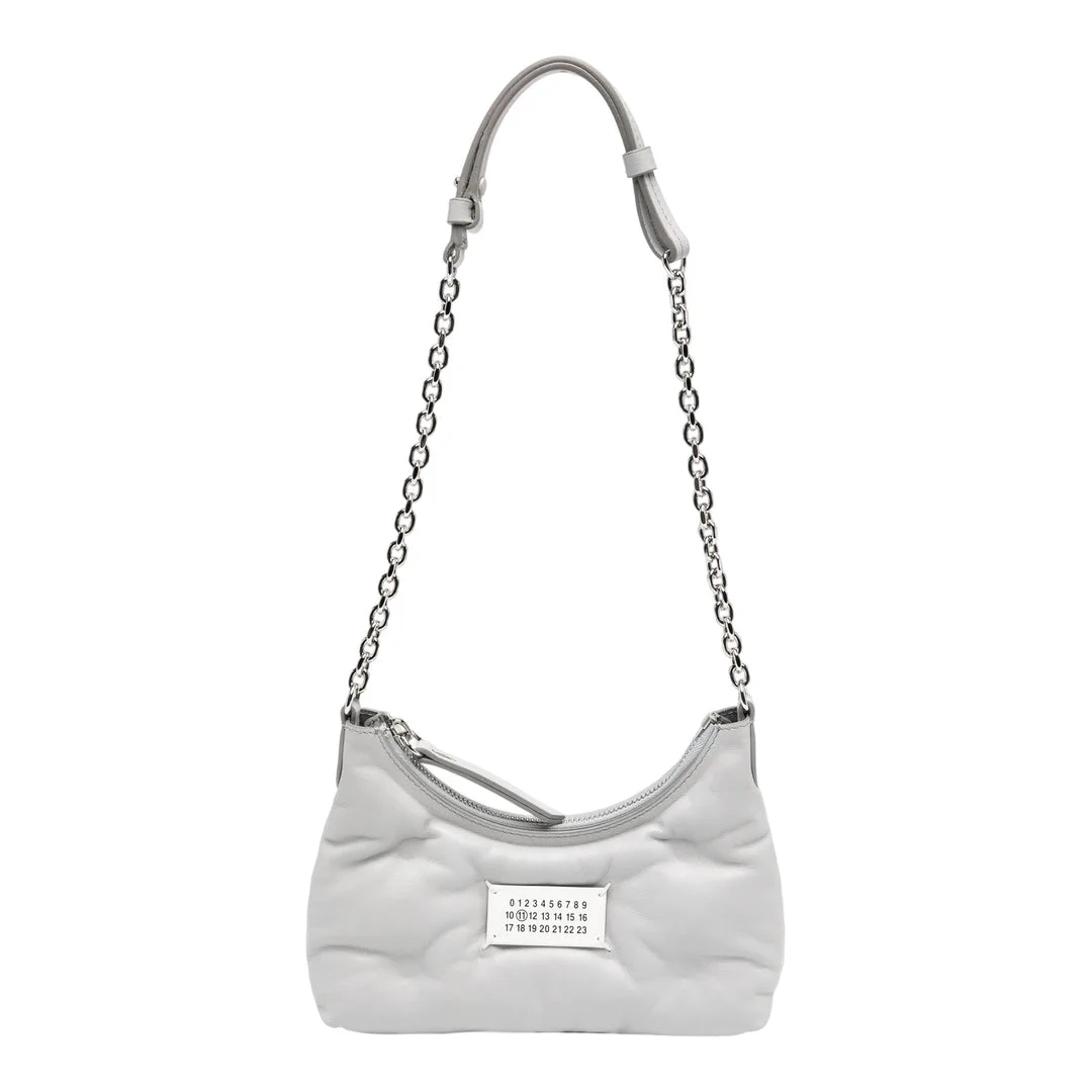600066329LGY0OS / PS25-SB1WG0021/P4300/T8058 - Quilted leather construction - Dual chain and leather strap system - Top zip closure - Signature numerical logo patch - Hobo silhouette design - Multiple carry options - Compact micro size The Maison Margiela Glam Slam Micro Quilted Crossbody delivers avant-garde luxury with the brand's signature deconstructed aesthetic and versatile carrying options. Crafted from quilted leather in sophisticated gray, featuring chain and leather strap combinations for multiple styling configurations. The iconic numerical logo patch and hobo silhouette create a statement piece that embodies Margiela's conceptual design philosophy.