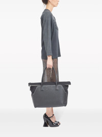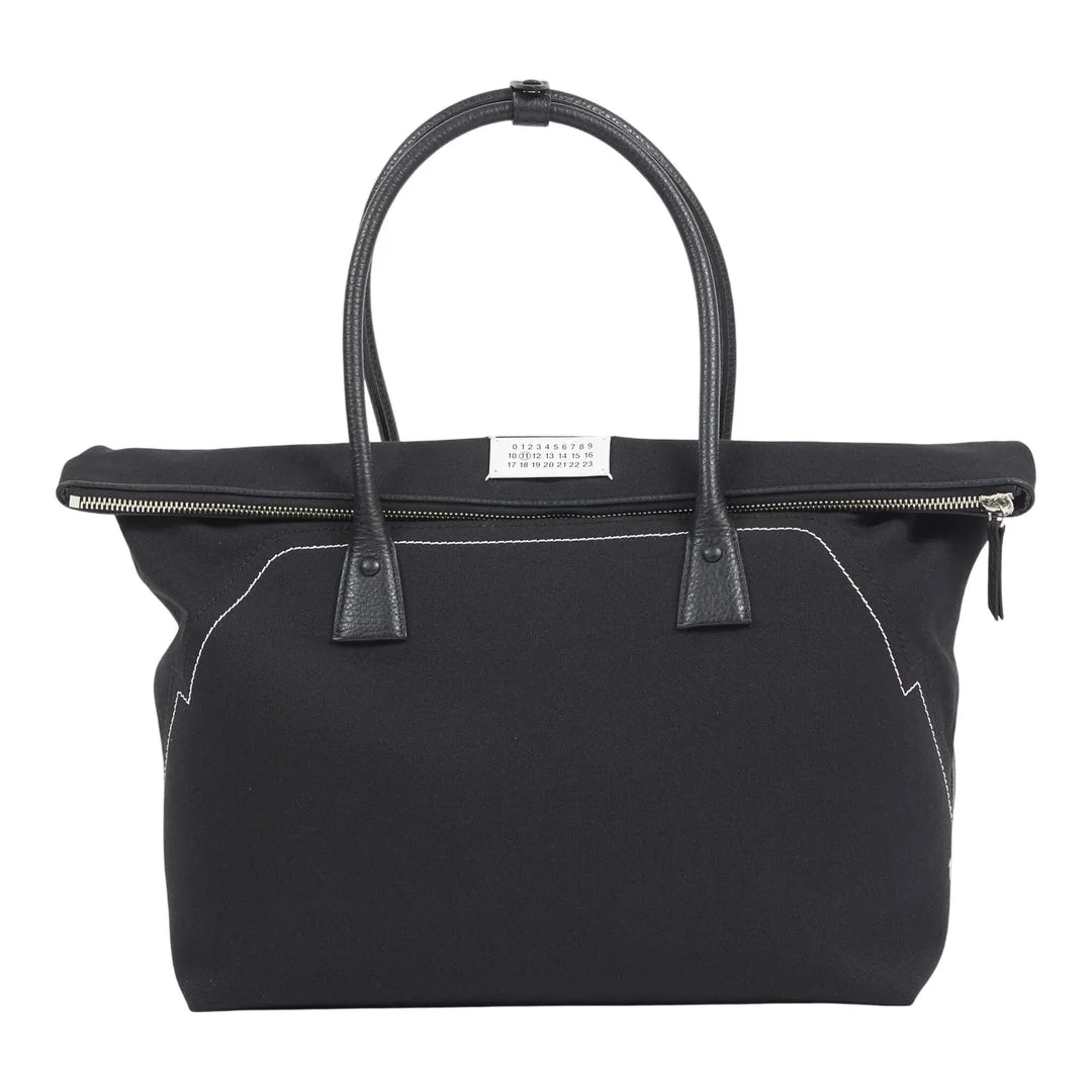 600066612BLK0OS / SB1WC0013/P4348/T8013 - Black canvas construction with embossed grain texture - Contrasting white topstitching throughout - Black leather handle trim and reinforcements - Top zip closure - Signature Maison Margiela numeric label - Large capacity interior - Structured base for stability The Maison Margiela Shopping Large Embossed Grain Tote delivers sophisticated functionality with the house's signature deconstructed aesthetic. Crafted from premium black canvas with contrasting white topstitching and leather trim details, featuring the iconic numeric label. The oversized silhouette and zip-top closure create a versatile carry-all for contemporary urban living.
