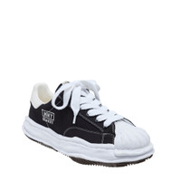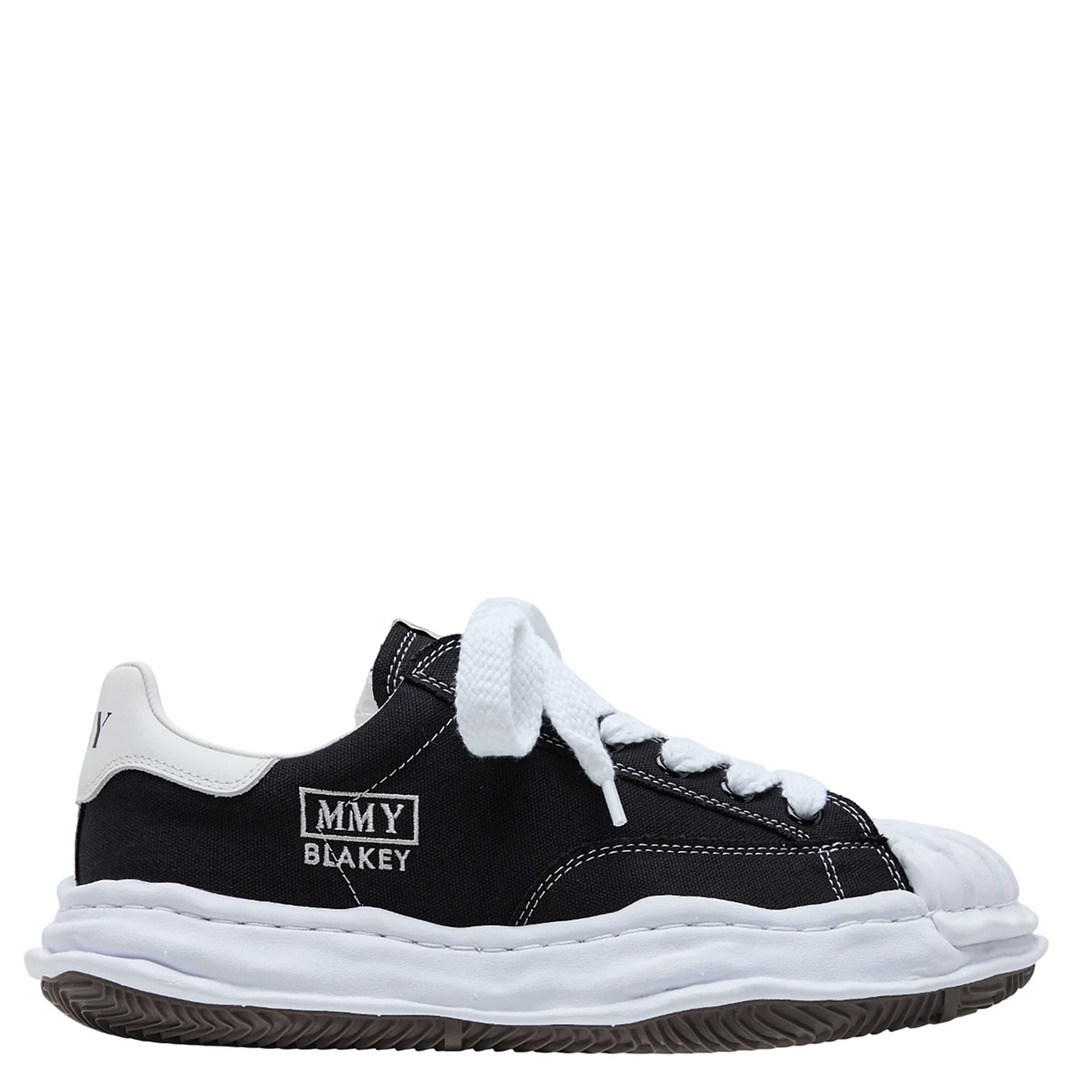 Mihara Yasuhiro Blakey Low Original Sole Canvas Sneakers The Blakey Low Original Sole Canvas Sneakers from Mihara Yasuhiro offer a minimalist and versatile design with a clean white canvas upper and contrasting black stitching. The unique jagged rubber sole adds a touch of edginess to the classic low-top silhouette. - Body: 100% Calf Leather / Sole: 100% Synthetic Rubber - Black - Contrasting toecap - Contrast stitching - Gold-tone logo lettering - Logo patch at the tongue - Front lace-up fastening - Branded insole - Chunky rubber sole