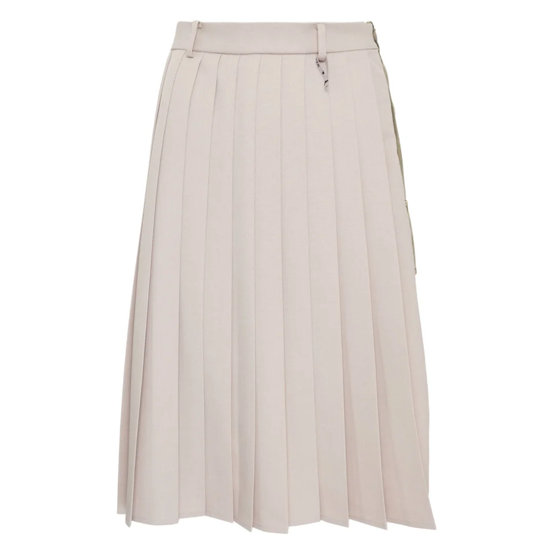 600080178BGE036 / B16SK131/00/BEIGE - Knife pleat construction throughout - High-rise structured waistband - Side zip closure - Midi length cut - Lightweight woven fabric - Regular fit through hips - Unlined construction MIHARA YASUHIRO Combined Pleats Skirt delivers avant-garde Japanese tailoring with architectural pleating and contemporary silhouette. Crafted from premium lightweight fabric in sophisticated cream beige, featuring carefully engineered knife pleats that create dynamic movement and texture. The structured waistband and precise construction showcase the designer's signature approach to deconstructed femininity.