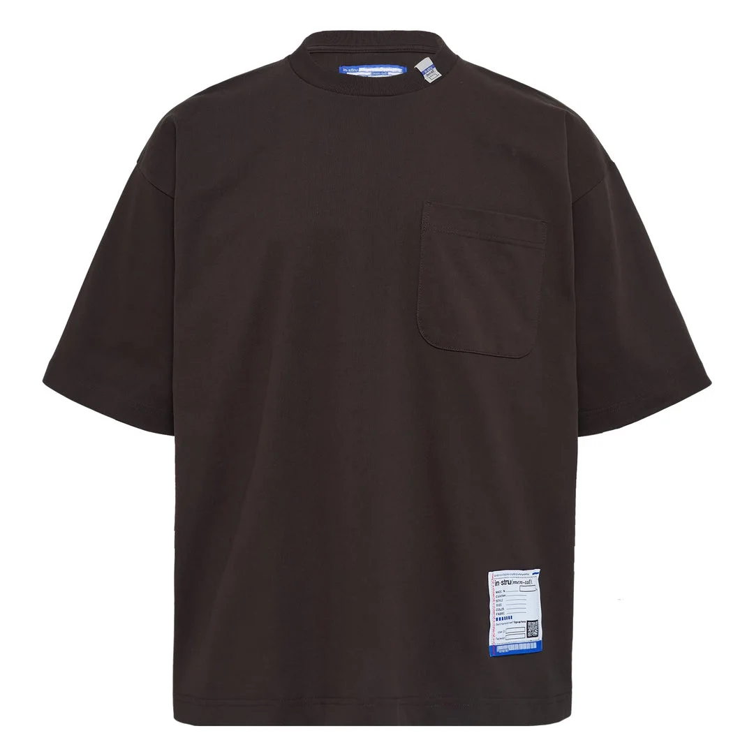 600080065BRN046 / I16TS552/00/BROWN - Heavy-weight cotton jersey construction - Chest patch pocket - Crew neckline - Short sleeves - Oversized relaxed fit - Brand label detailing MIHARA YASUHIRO Heavy Weight Jersey Pocket T-Shirt delivers streetwear functionality with premium construction and utilitarian design. Crafted from substantial heavy-weight cotton jersey in deep black, featuring a practical chest pocket and relaxed silhouette. The oversized fit and signature brand detailing create a contemporary statement piece with elevated comfort.