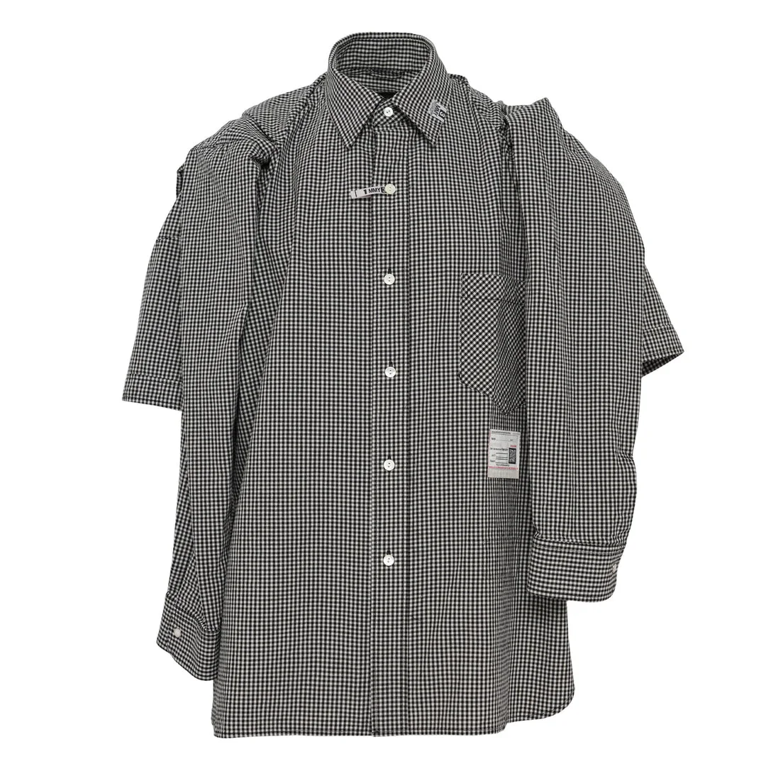 600080113WHT044 / A16SH086/00/WHITE - Innovative shawl overlay construction - Classic point collar - Short sleeves - Button-front closure - Gingham check pattern - Chest pocket detail - Premium cotton construction - Deconstructed layered design - Regular fit MIHARA YASUHIRO Shawl Layered Short Sleeve Shirt delivers avant-garde design with innovative layered construction and architectural details. Crafted from premium cotton in a sophisticated gingham check pattern, featuring a unique shawl overlay that creates dimensional texture and visual interest. The deconstructed layering technique and signature Japanese tailoring create a statement piece that redefines contemporary shirting.