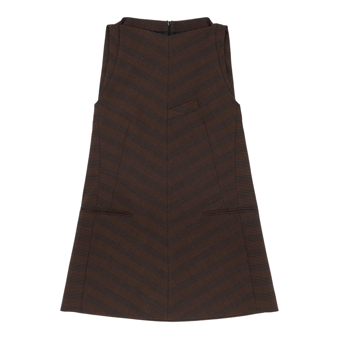 600073885BRN038 / S52DA0067/M35475/001F - Sleeveless design - A-line silhouette - Rear zip closure - Front patch pockets - Houndstooth pattern - Structured woven construction - Mini length - Regular fit MM6 Mini Dress delivers contemporary minimalist design with architectural precision and modern sophistication. Crafted from structured woven fabric in rich brown houndstooth pattern, featuring clean lines and geometric construction. The sleeveless silhouette and signature MM6 aesthetic create a versatile statement piece for modern wardrobes.