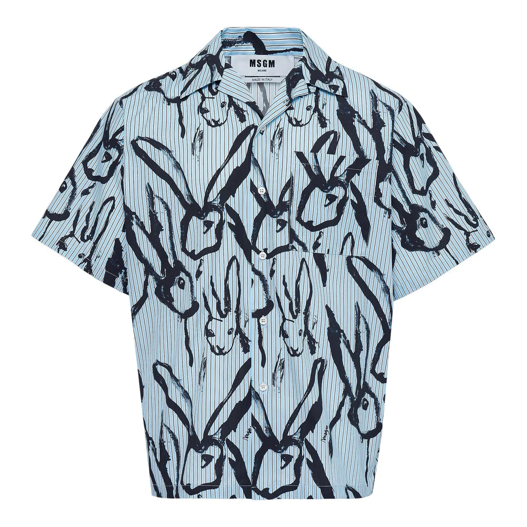 600073473BLU039 / 3940ME16/257551/84 - All-over rabbit motif print - Vertical pinstripe base pattern - Classic collar - Full button placket - Short sleeves - Lightweight cotton construction - Relaxed fit - Straight hem MSGM Rabbit Print Button-Up Shirt delivers Italian streetwear sophistication with playful graphic elements and contemporary tailoring. Crafted from lightweight cotton poplin with vertical pinstripes and bold rabbit motif prints throughout, featuring the brand's signature artistic expression. The relaxed fit and statement print create a distinctive piece that embodies MSGM's playful luxury aesthetic.