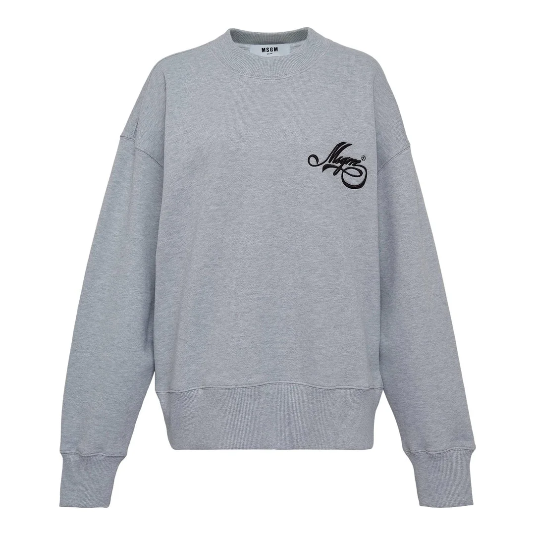 600073371GRY00S / 3941MDM80/257793/95 - Crew neck with ribbed collar - Embroidered MSGM logo on chest - Long sleeves with ribbed cuffs - Ribbed hem - Cotton blend fleece construction - Oversized relaxed fit The MSGM Sweatshirt delivers contemporary Italian streetwear with signature logo detailing and relaxed comfort. Crafted from soft cotton blend fleece in sophisticated gray melange, featuring the brand's distinctive script logo embroidered on the chest. The oversized fit and premium construction create an effortless statement piece for modern casual wardrobes.