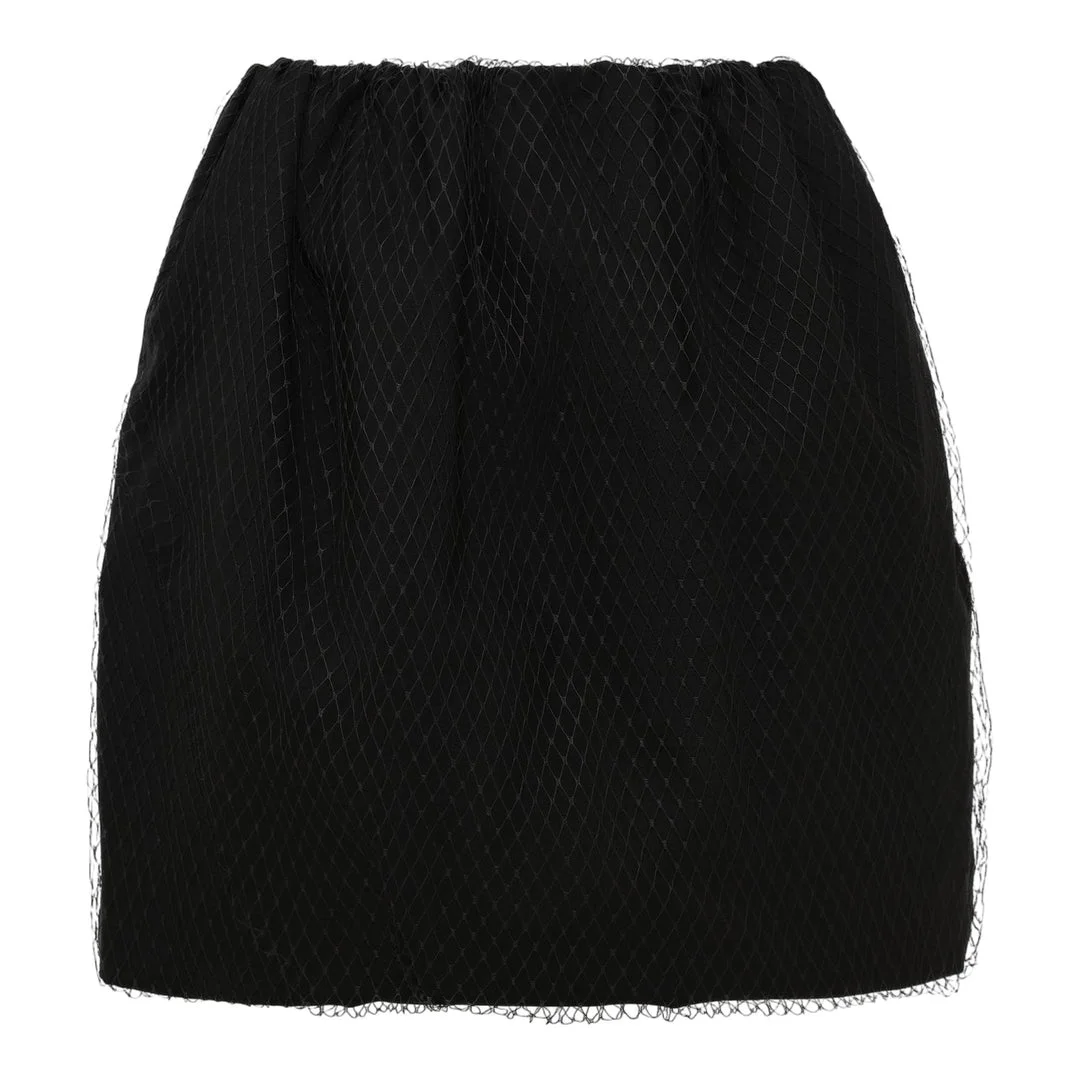 Black miniskirt in cool wool with tulle layer