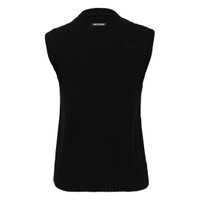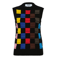 MSGM Knit Top In Maglia Knit vest with multicolored 3D checkerboard pattern on the front. Ribbed crew neck, armholes, and hem. Solid-color back with MSGM logo label.