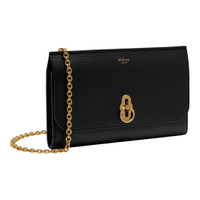600070935BLK0OS / BA25RL6090/205A100 - Small classic grain leather construction - Signature turn-lock closure - Detachable gold chain strap - Interior card slots and compartments - Can be worn as clutch or crossbody - Gold-tone hardware throughout The Mulberry Amberley Clutch delivers sophisticated evening elegance with versatile day-to-night functionality. Crafted from premium small classic grain leather in rich black, featuring the signature turn-lock closure and detachable gold chain strap. The streamlined silhouette and timeless hardware create an essential accessory for any luxury collection.