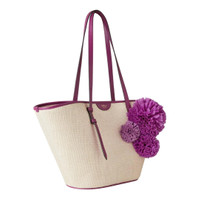 Basket Tote Orchid Bloom Raffia & Pom Poms