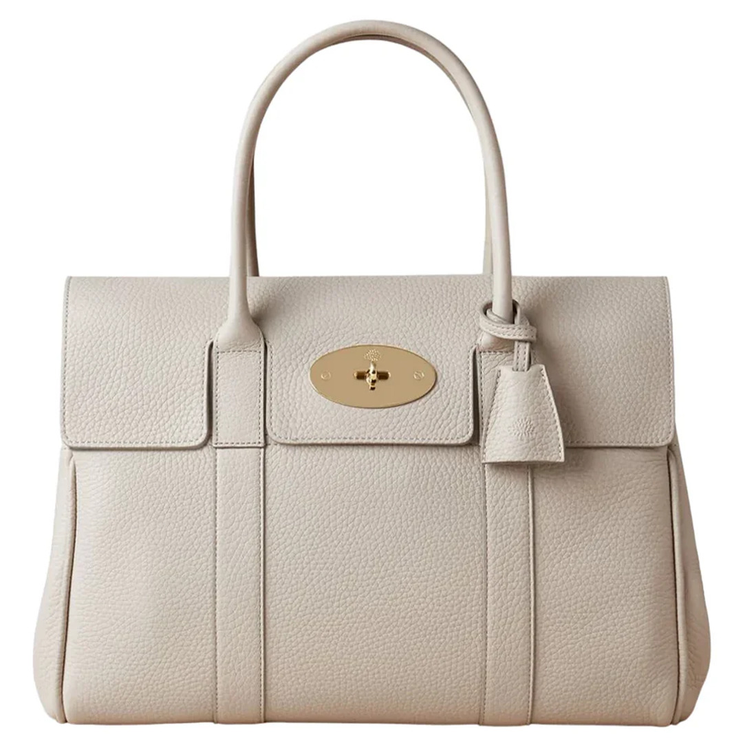 Mulberry Bayswater Heavy Grain (Chalk) The Bayswater is considered a Mulberry bag icon. A timeless and classic shoulder bag, it unites the very best of Mulberry’s craft heritage and effortless style. The interior belted sides can be adjusted to give more space inside, making a Bayswater ideal for any lifestyle. - 100% Leather - Height 26.5 cm / Width 36 cm / Depth 16.5 cm / Handle drop 15.5 cm - Chalk - Two top handles - Foldover top with Postman's Lock closure - Inner zip pocket - Two inner slip pockets - Four base feet at the base - Unlined - Gold-tone hardware - Main compartment
