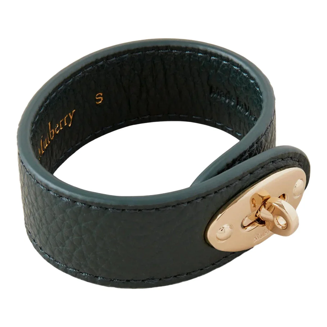 300038672GRN-SS / A4QB2157/205Q633 - Small classic grain leather construction - Signature Mulberry postman's lock closure - Rose gold tone hardware - Adjustable turnlock fastening - Contrast stitching detail - Structured cuff design The Mulberry Bayswater Leather Bracelet delivers luxury craftsmanship with signature turnlock closure and premium leather construction. Made from small classic grain leather in forest green, featuring the iconic Mulberry postman's lock hardware in polished rose gold tone. The structured band and signature closure create a timeless accessory that elevates any outfit with British luxury heritage.