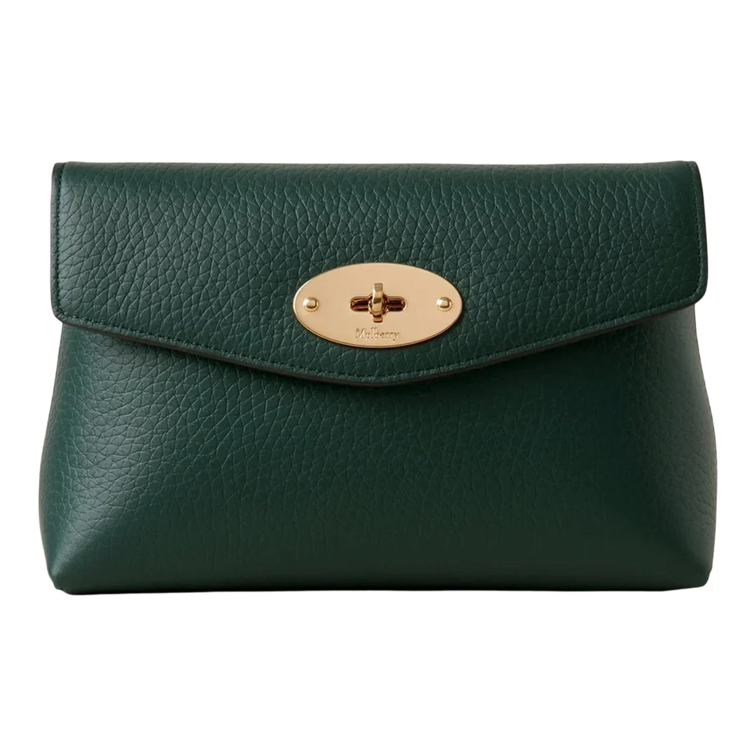 600061077DGN0OS / BS25RL6544/736Q633 - Heavy grain leather construction - Signature postman's lock closure - Curved envelope silhouette - Gold-tone hardware - Structured interior compartment - Compact travel size The Mulberry Darley Cosmetic Pouch delivers luxury organization with signature British craftsmanship and elegant functionality. Crafted from heavy grain leather in sophisticated forest green, featuring the iconic postman's lock closure and curved envelope silhouette. The structured design and premium leather construction create a timeless accessory for beauty essentials and travel organization.