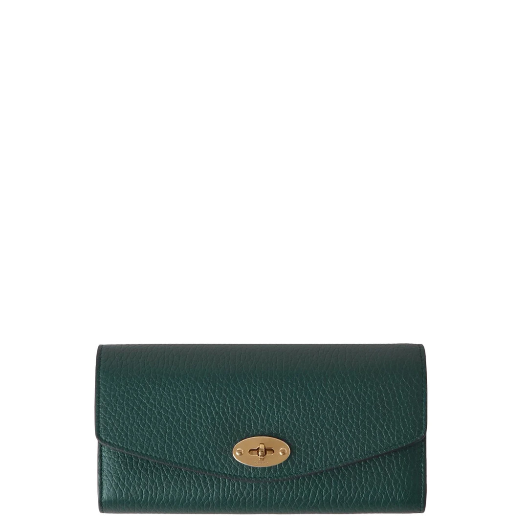Mulberry Darley Wallet Heavy Grain ( Mulberry Green ) - Surface: 100% Bovine Leather - Height 10cm / Width 19cm / Depth 2.5cm - Mulberry Green - Brass component finish - Postman Lock closure - Two gusset compartments - Twelve credit card slots - One internal zip compartment - Two internal slip pockets - One external slip pocket for card - Nappa lined - Product Code: RL6538-736Q633