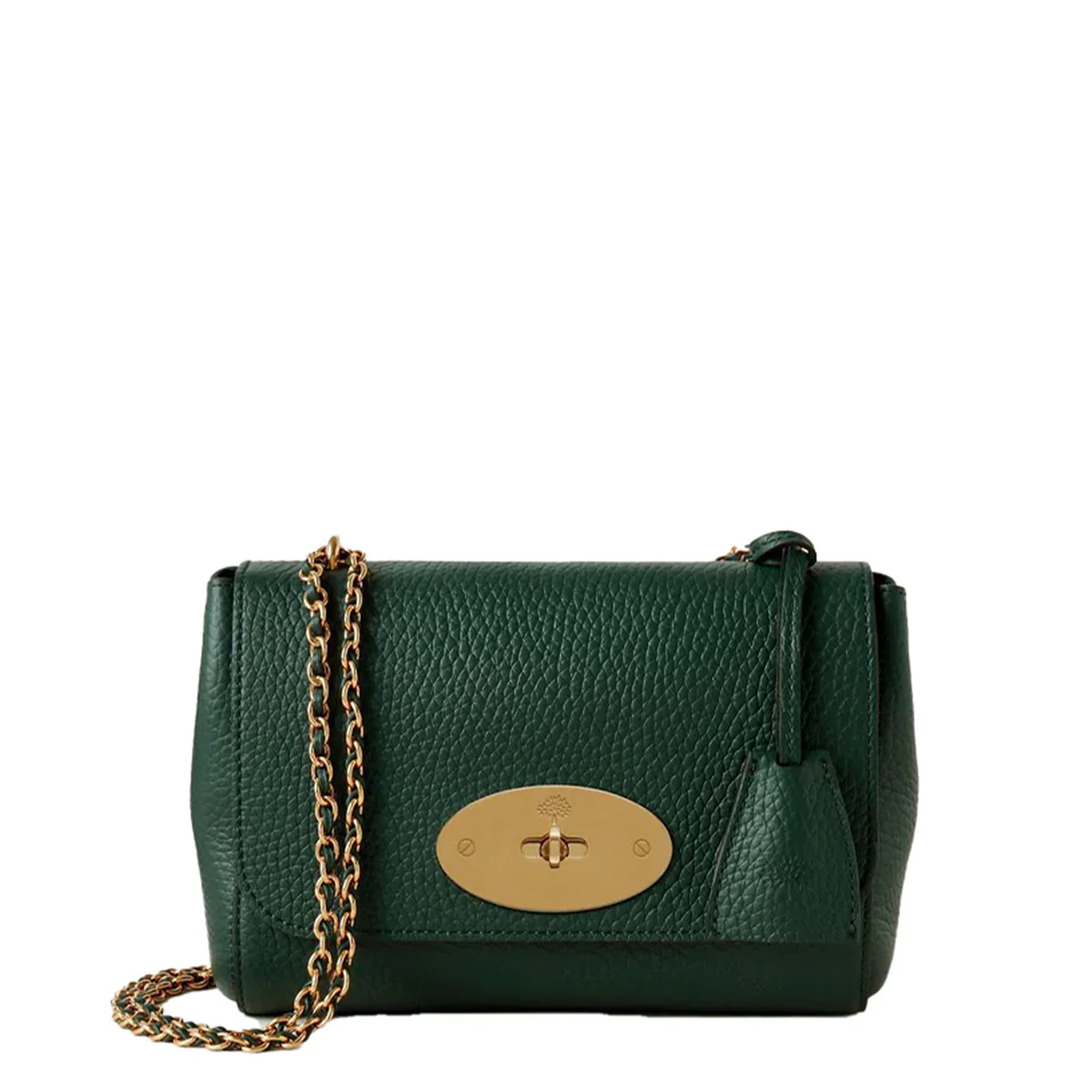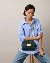 Mulberry Lily Heavy Grain ( Mulberry Green) The Lily is an effortlessly elegant style often chosen as an evening bag due to its versatile size and compact shape. The Lily has a woven leather and chain strap that can be worn short or long, and is finished with signature details such as the Postman's Lock and leather padlock fob. - 100% Calf Leather - Height 17 cm / Width 21 cm / Depth 9 cm / Handle drop 29 cm / Chain Shoulder Strap length 119 cm - Mulberry Green - Foldover top - Postman's Lock closure - Woven leather and chain shoulder strap - Hanging fob with hidden padlock - Internal slip pocket - Gold-tone hardware - Main compartment - Product Code: HH6950-736Q633