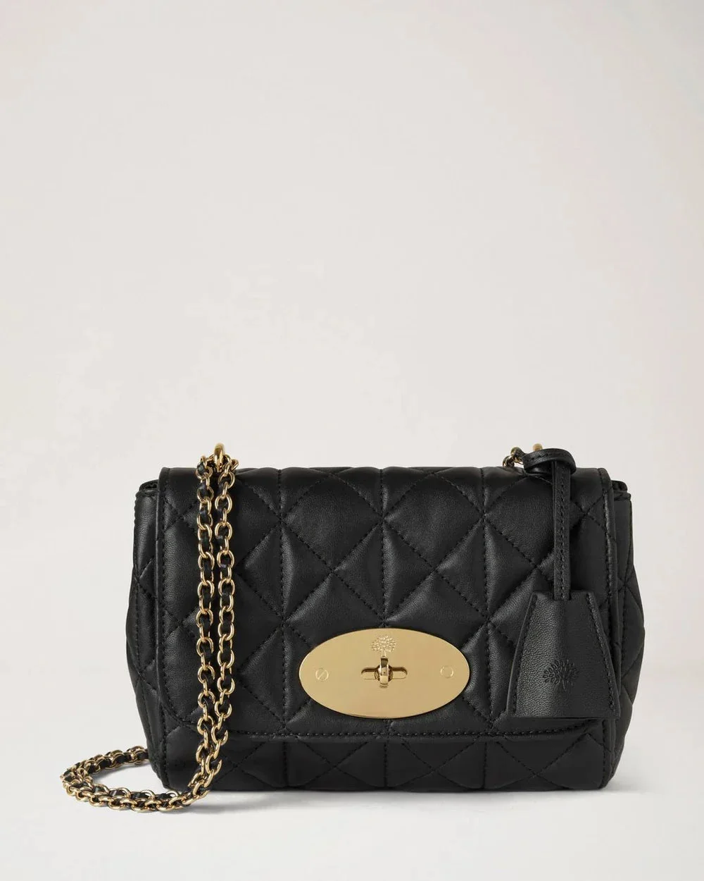 600077089BLK0OS / S26HH9913/676A100 - Signature postman's lock closure in gold-tone hardware - Diamond quilted nappa leather construction - Adjustable chain shoulder strap - Flap closure with twist lock - Compact crossbody design - Mulberry tree logo embossed on hardware The Mulberry Lily Quilted Vesta Nappa delivers timeless elegance with the brand's signature quilted craftsmanship. Crafted from premium vesta nappa leather in sophisticated black, featuring diamond quilting and the iconic postman's lock closure. The structured silhouette and luxurious hand-feel create a versatile statement piece for day-to-evening wear.