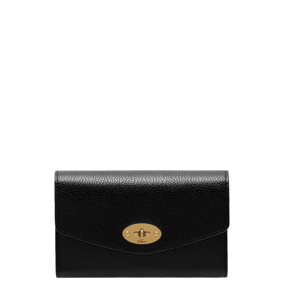 Mulberry Medium Darley Wallet Small Classic Grain Featuring Mulberry's iconic Postman's Lock, the Darley Wallet's elegant envelope silhouette marries a practical six-card wallet with classic Mulberry styling, resulting in a sleek wallet perfect for everyday use.