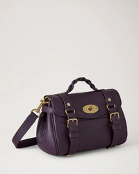 600077113PUR0OS / S26RL6595/736V697 - Signature postman's lock closure with turn clasp - Twisted leather top handle - Adjustable shoulder strap - Front buckle straps with brass hardware - Heavy grain leather construction - Antique brass tone hardware - Structured satchel silhouette - Interior compartment The Mulberry Mini Alexa Heavy Grain delivers iconic British craftsmanship in a compact, versatile silhouette. Crafted from signature heavy grain leather in deep purple with antique brass hardware, featuring the brand's signature postman's lock closure. The structured design and premium leather construction create a timeless investment piece that transitions seamlessly from day to evening.