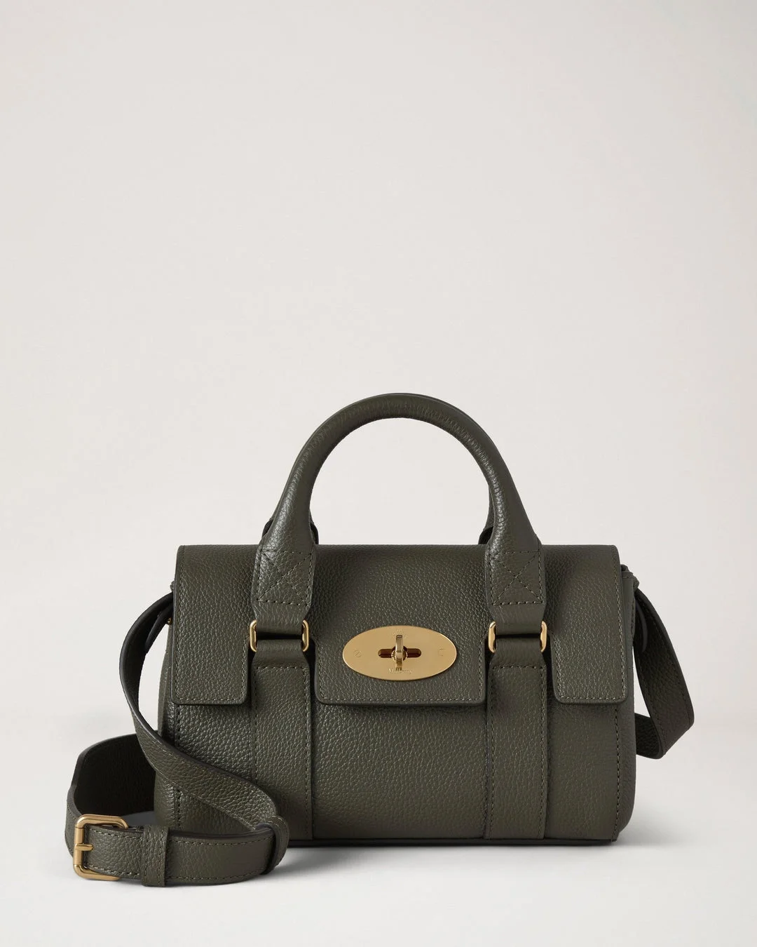 The Mulberry Mini Heritage Bayswater delivers timeless British luxury in a compact, versatile silhouette. Crafted from premium small classic grain leather in sophisticated olive green, featuring the iconic postman's lock closure and structured construction. The heritage design and detachable shoulder strap create the perfect balance of elegance and practicality for modern lifestyles.