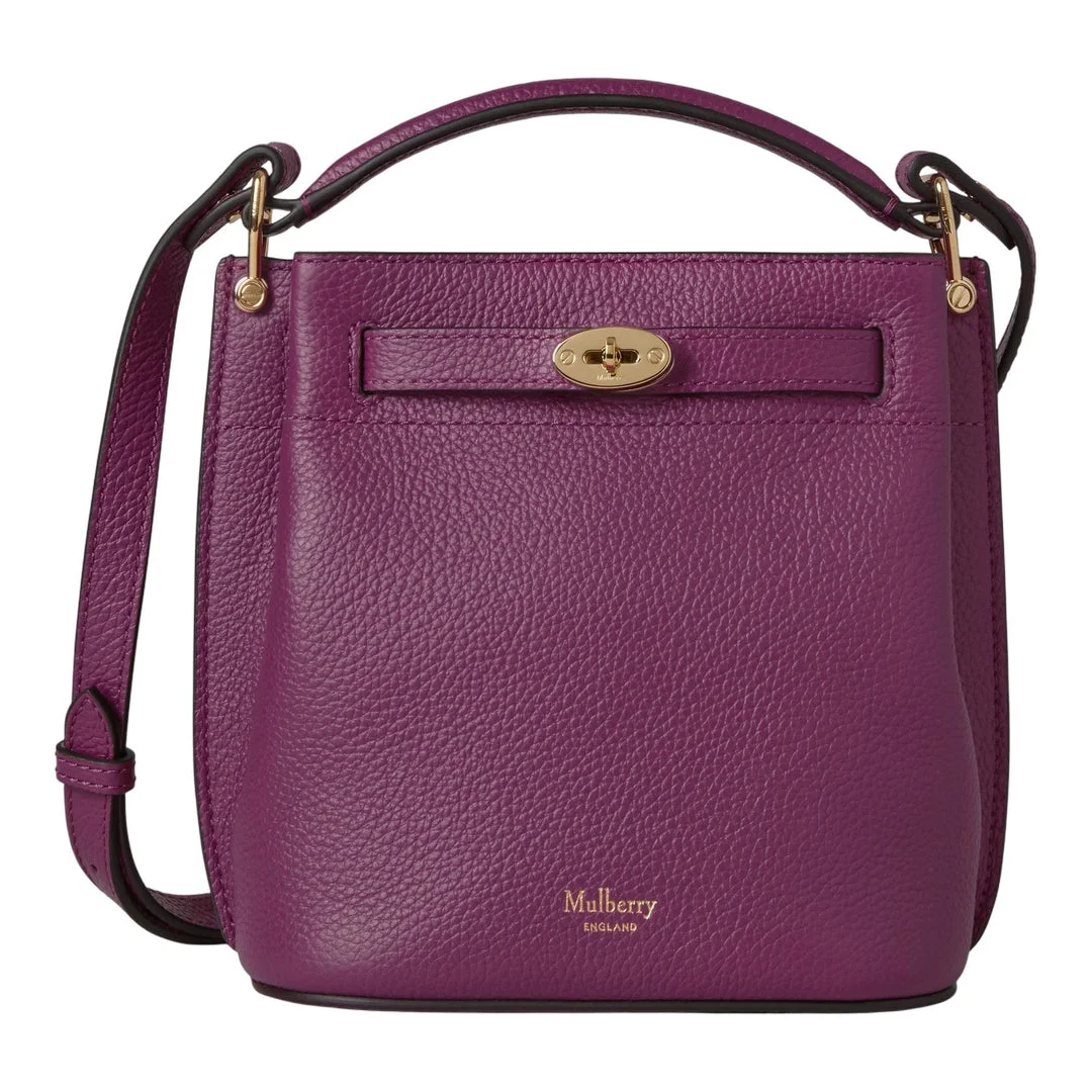 600071018PUR0OS / A25RL8803/205J512 - Small classic grain leather construction - Signature postman's lock closure - Adjustable shoulder strap - Gold-tone hardware - Top handle for handheld carry - Bucket bag silhouette - Interior compartment The Mulberry Mini Islington Bucket Bag delivers timeless British luxury with contemporary functionality and elegant proportions. Crafted from premium small classic grain leather in rich orchid bloom purple, featuring gold-tone hardware and the signature postman's lock closure. The structured bucket silhouette and adjustable shoulder strap create versatile styling options for day-to-evening wear.