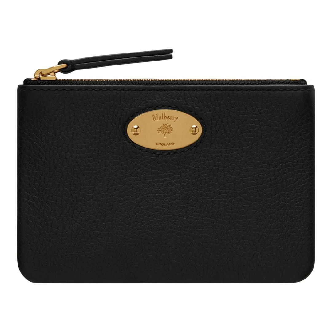 Mulberry Plaque Small Zip Coin Pouch Black Small Classic Grain