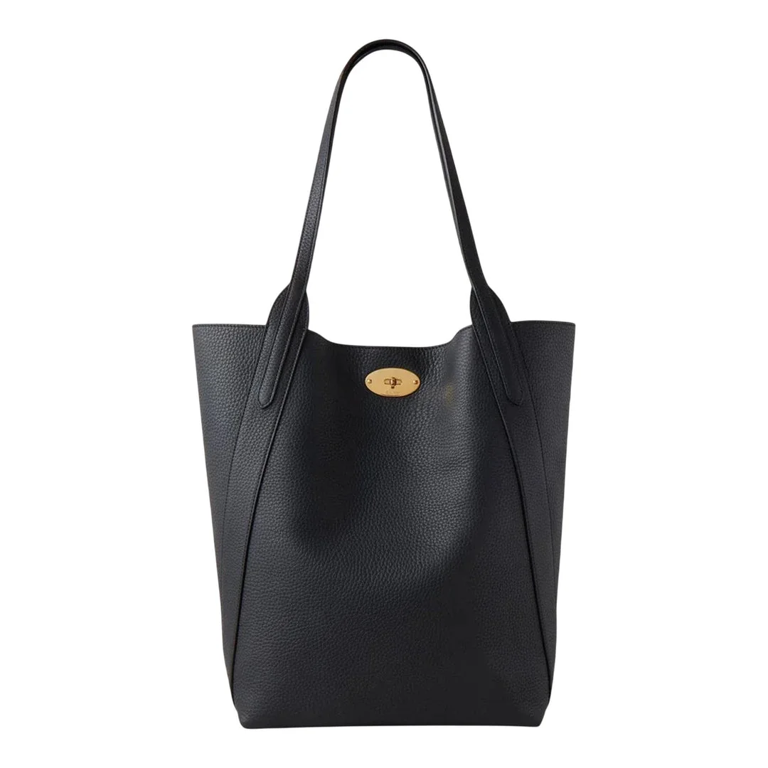 600061047BLK0OS / BS25HH9104/736A100 - Heavy grain leather construction - Signature postman's lock closure - North-south vertical orientation - Dual leather shoulder straps - Spacious main compartment - Structured silhouette - Gold-tone hardware accents The Mulberry North South Bayswater Tote delivers timeless British luxury with structured craftsmanship and spacious functionality. Crafted from premium heavy grain leather in classic black, featuring the iconic postman's lock closure and refined leather construction. The vertical orientation and signature Mulberry design create an elegant everyday essential for the modern professional.