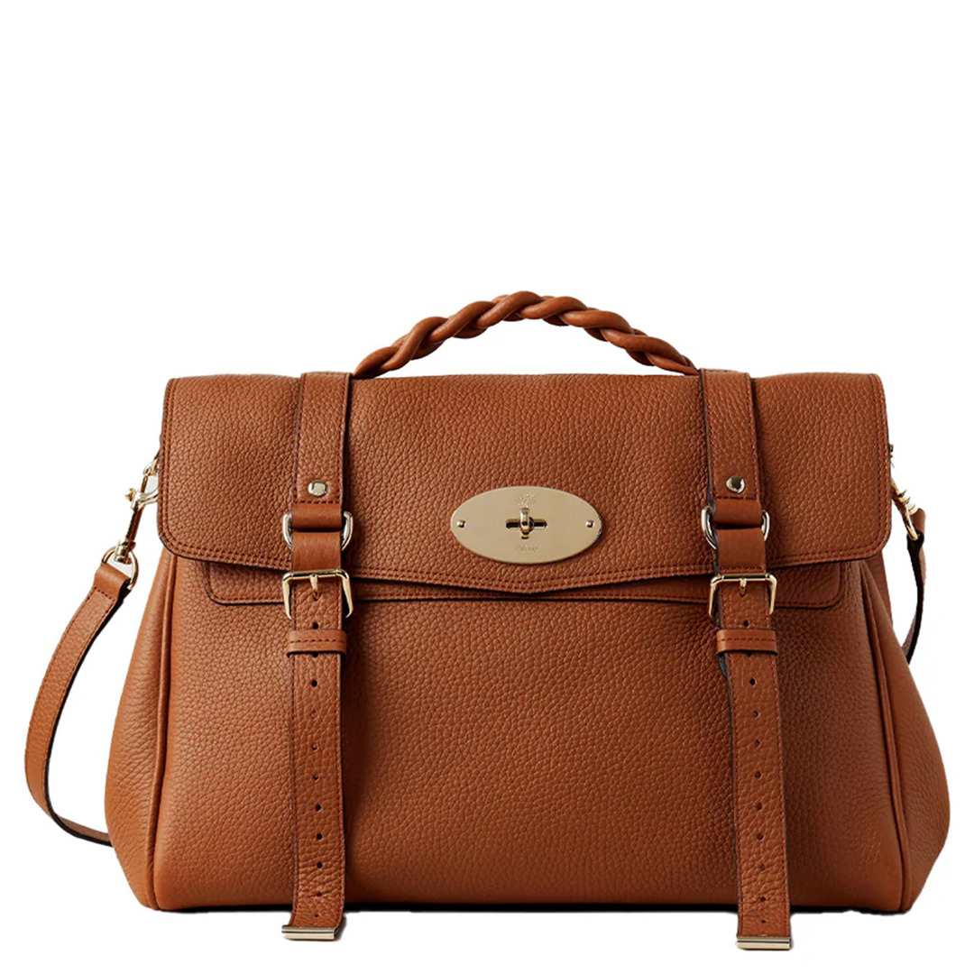 Mulberry Oversized Alexa Heavy Grain The Oversized Alexa is a larger iteration of the understatedly cool satchel, complete with the signature Mulberry Postman Lock and belt buckle detail. It offers ample storage to keep all your essentials organized. Carry by the plaited leather top handle or wear with the adjustable cross body strap.