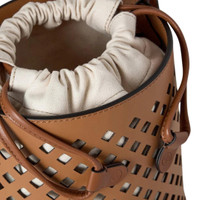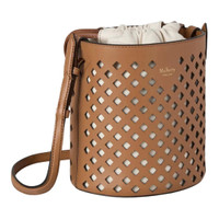600070972BRN0OS / A25HH9728/709G180 - Perforated leather with diamond-shaped cutouts - Drawstring closure with protective lining - Adjustable leather crossbody strap - Cotton canvas interior lining - Bucket silhouette design - Mulberry England branding The Mulberry Perforated Bucket Bag delivers artisanal British luxury with contemporary design and functional versatility. Crafted from premium toffee-colored perforated leather with geometric diamond cutouts and cotton canvas lining for durability. The adjustable crossbody strap and signature drawstring closure create an elegant everyday companion with timeless Mulberry heritage.
