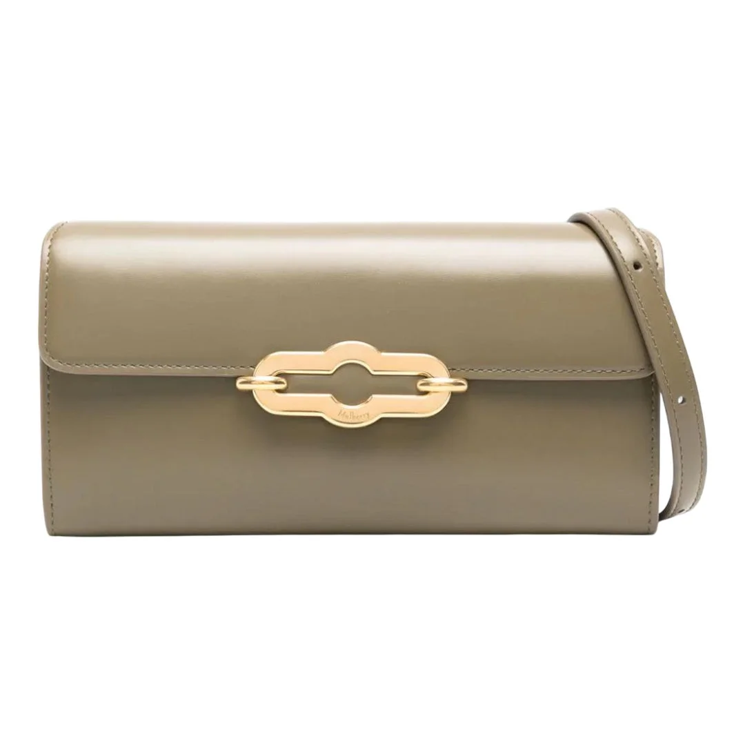 300044349GRN-NS / S5RL8271/603R563 - Super lux calf leather construction - Signature gold-tone metal clasp closure - Detachable adjustable leather strap - Multiple card slots and compartments - Compact crossbody or clutch design - Mulberry signature hardware The Mulberry Pimlico Wallet On Strap delivers versatile luxury with convertible functionality as both wallet and mini crossbody bag. Crafted from super lux calf leather in sophisticated sable, featuring the signature gold-tone Mulberry clasp closure. The compact design and detachable strap create the perfect accessory for hands-free styling or evening occasions.