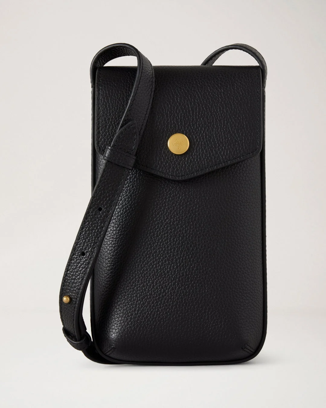 The Mulberry Press Stud Phone Pouch delivers premium leather craftsmanship with hands-free convenience and sophisticated style. Crafted from small classic grain leather in deep black, featuring an adjustable crossbody strap and secure press stud closure. The compact design and luxury hardware create the perfect accessory for modern mobility and effortless elegance.