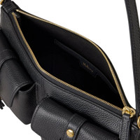 600070956BLK0OS / BA25RL8904/205A100 - Premium black grained leather construction - Adjustable shoulder strap with buckle hardware - Two front flap pockets with buckle closures - Top zip closure with leather pull - Polished gold-tone hardware throughout - Compact mini size for essentials - Structured rectangular silhouette - Interior organizational compartments The Mulberry Roxanne Mini Shoulder Bag delivers compact luxury with British heritage craftsmanship and versatile functionality. Expertly crafted from premium black grained leather with polished gold-tone hardware and dual front buckle pockets for organization. The adjustable shoulder strap and structured silhouette create a timeless accessory perfect for day-to-evening styling.