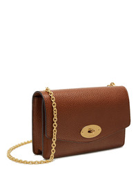 Mulberry Small Darley Two Tone Scg The Small Darley is a classic bag that celebrates our iconic Postman’s Lock. It’s perfect for carrying essentials or keeping valuables secure inside a large tote. Its elegant envelope silhouette can even be transformed into a clutch due to its detachable chain strap. - Colour: Brown - Composition: Cow Leather - Postman's Lock closure - Removable chain strap - One main compartment - Eight credit card slots - One internal zip compartment - Two internal slip pockets - One external zip pocket with gusset - Brass component finish - Nappa lined