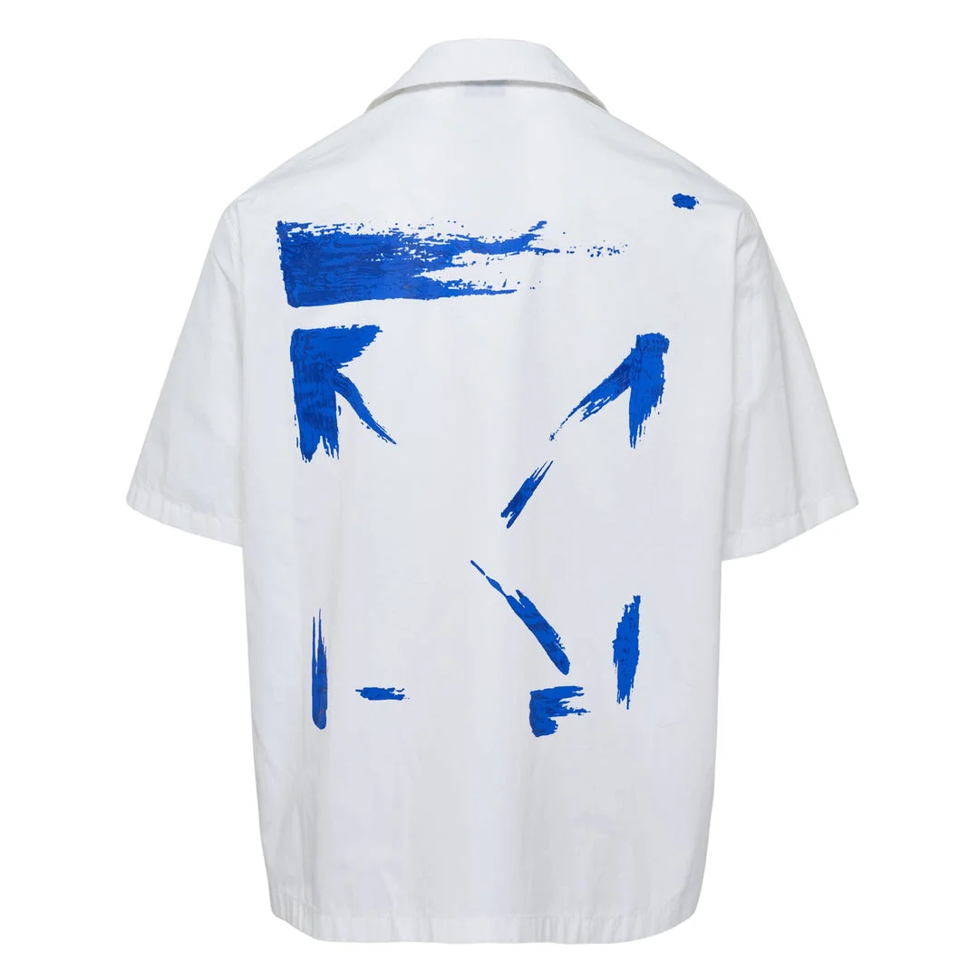 600076142WHT052 / OMGG01FF25FAB0010146/00/WHITE - Camp collar design - Short sleeves - Front button closure - Off-White logo embroidery - Crisp poplin cotton construction - Relaxed bowling shirt fit - Straight hem Off-White Brush Arrow Poplin Bowling Shirt delivers contemporary streetwear with signature brand aesthetics and relaxed sophistication. Crafted from crisp white poplin cotton featuring the iconic Off-White logo embroidered in blue, with classic bowling shirt construction and camp collar design. The relaxed fit and premium cotton fabrication create a versatile piece that bridges casual and elevated styling.