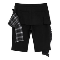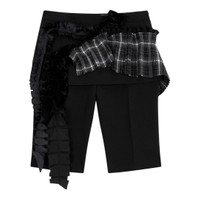 600074783BLK00S / YY254PT001/00/BLK - Elasticated waistband with drawstring tie - Asymmetrical pleated overlay panels - Metallic accordion-pleated detailing - Side ruffled dimensional trim - Bermuda length cut - Relaxed fit through thigh OPEN YY Pleated Layered Bermuda Shorts deliver avant-garde design with architectural pleating and asymmetrical construction. Crafted from structured black fabric with contrasting metallic pleated panels and dimensional ruffled detailing along the side. The deconstructed silhouette and multi-layered aesthetic create a bold statement piece for contemporary wardrobes.