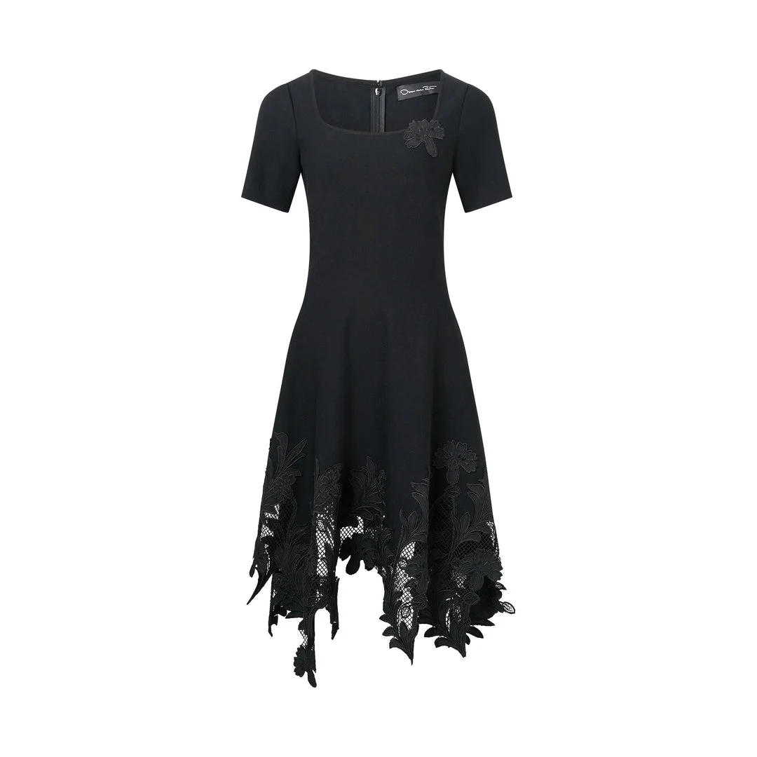 Oscar de la Renta Short Sleeve Marbled Carnation Dress