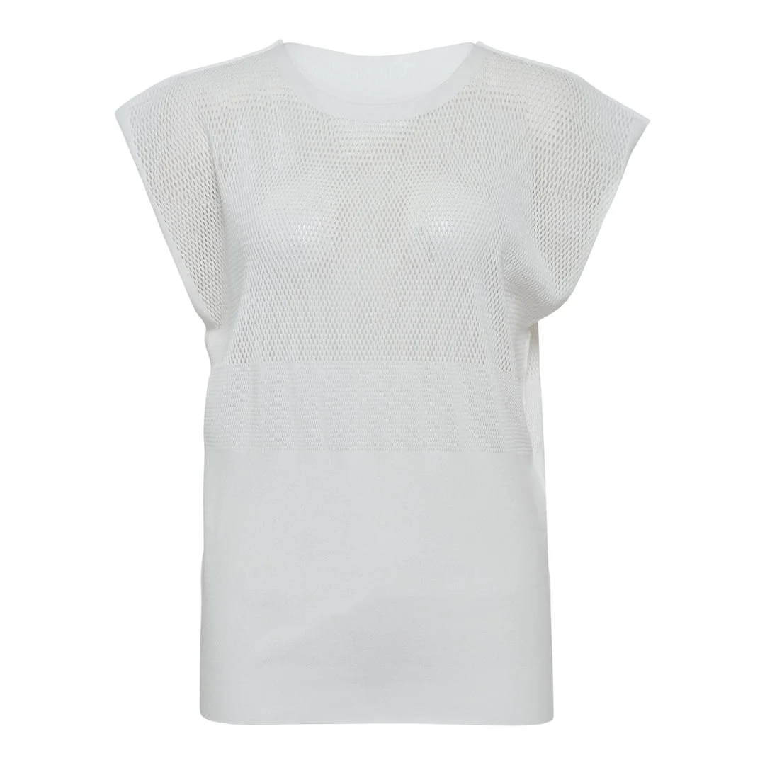 600068145WHT000 / PP56KK941/00/01/MAY - A-Poc textile technology construction - Perforated mesh sections - Sleeveless design - Relaxed, oversized fit - Machine washable pleated fabric - Seamless knit construction PLEATS PLEASE ISSEY MIYAKE A-Poc Screen Shirt delivers innovative textile technology with signature pleated construction. Crafted from the brand's revolutionary A-Poc (A Piece of Cloth) knit fabric in pristine white, featuring mesh-like perforated sections and fluid drape. The architectural silhouette and cutting-edge manufacturing process create a sculptural garment that embodies Japanese design innovation.