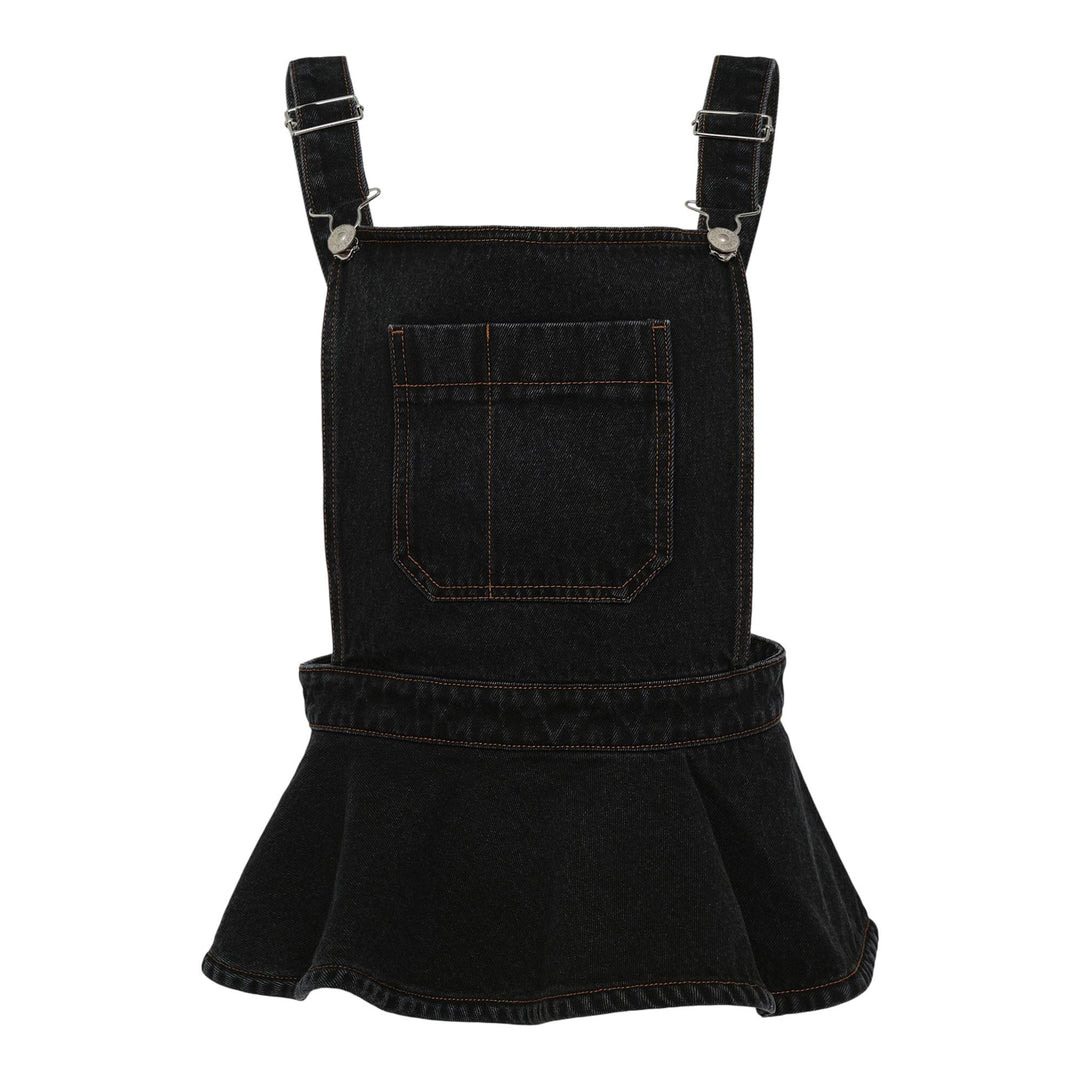 pushBUTTON Black Flared Hem Overall These denim overalls feature a flared hem. They can be worn alone or layered for a variety of styles. The button detail at the waist allows for easy size adjustment.