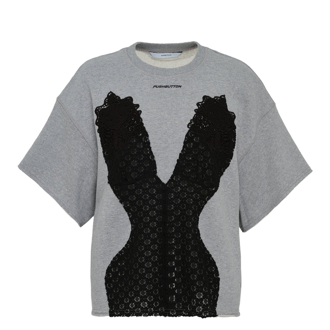 lace-applique T-shirt