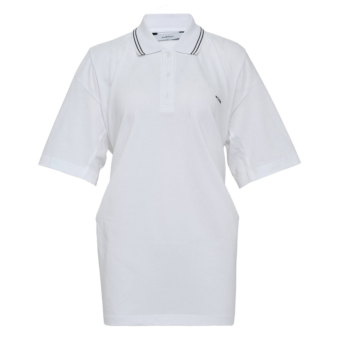 pushBUTTON White Apron Wrap Pique Top