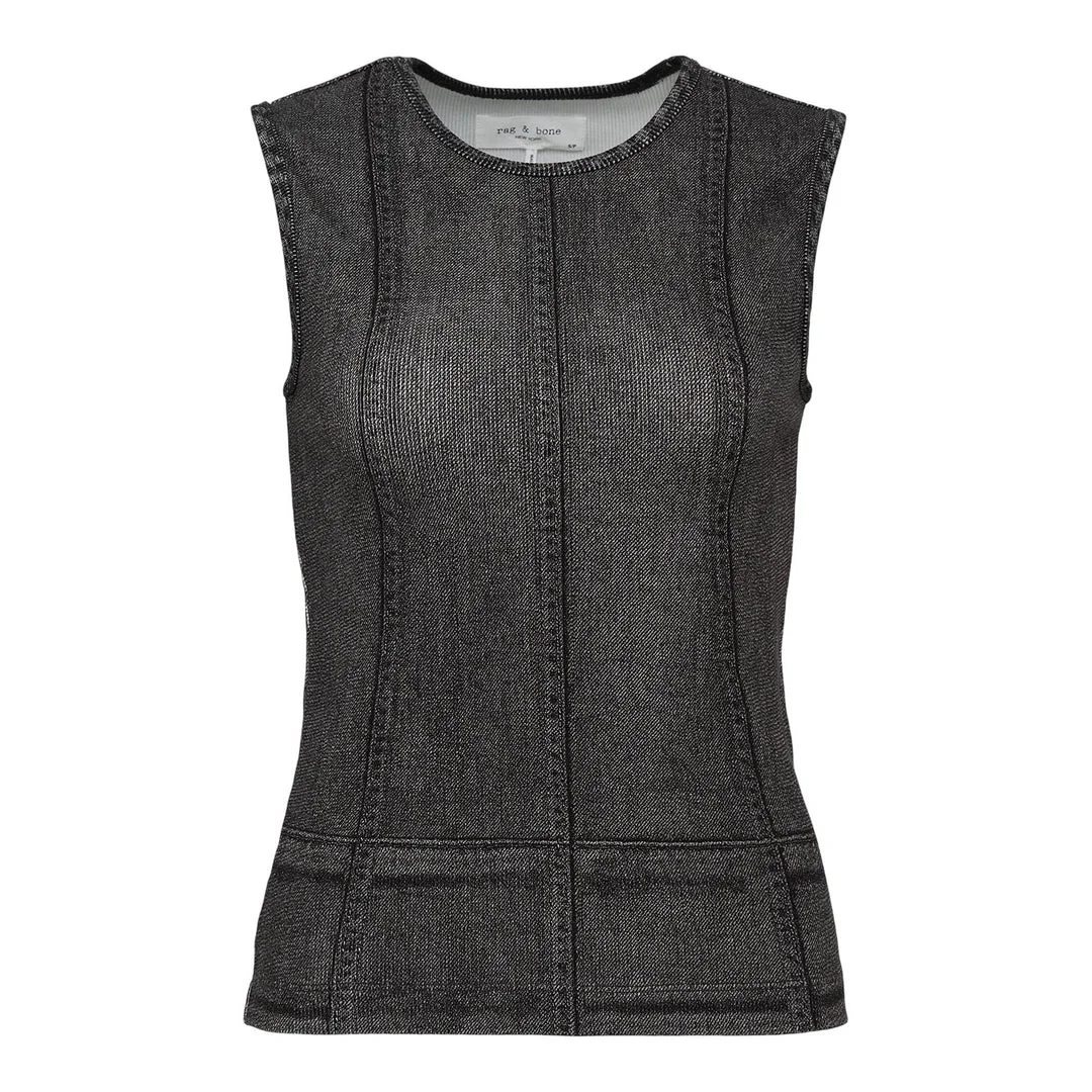 600070687BLKXXS / PF25-WCW25PA0030203/WH/black - Ribbed cotton construction - Sleeveless muscle tank silhouette - Contrast topstitching details - Crew neckline with ribbed trim - Slim fitted cut - Raw edge hem detailing The rag & bone Miramar Rib Muscle Tank delivers contemporary minimalism with athletic-inspired construction and refined tailoring. Crafted from premium ribbed cotton in sophisticated charcoal gray, featuring a sleeveless silhouette with contrast stitching details. The structured ribbed texture and modern muscle tank fit create a versatile piece for elevated casual styling.