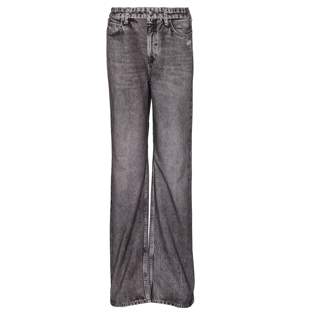 rag & bone Miramar Shea High-Rise Jeans The Miramar Shea pants are made from cotton terry cloth, individually cut and sewn. The interior is ultra-soft, while the outer layer features a printed design that resembles your favorite jeans. They feature a relaxed straight-leg fit, a high waist, and a full-length style.