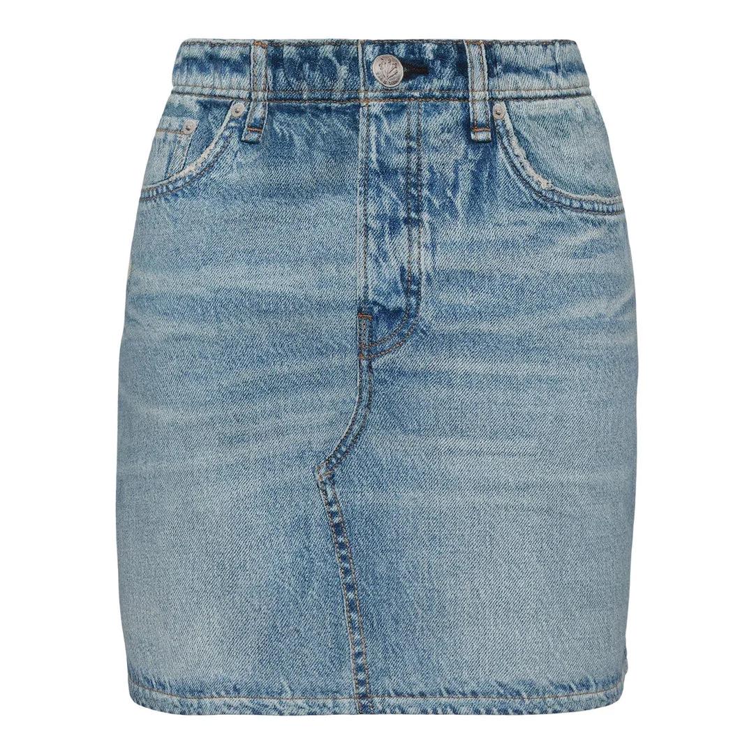 600070691LBLXXS / PF25-WCW25PB0048204/WH/meadowb - High-waisted design - Front button and zip closure - Classic five-pocket construction - Belt loops at waistband - Terry denim fabric - Contrast stitching details - Mini length silhouette - Structured fit The rag & bone Miramar Terry Mini Skirt delivers contemporary denim styling with elevated construction and modern versatility. Crafted from premium terry denim in classic light wash blue, featuring traditional five-pocket detailing and authentic contrast stitching throughout. The high-waisted silhouette and structured fit create a refined take on casual denim essentials.