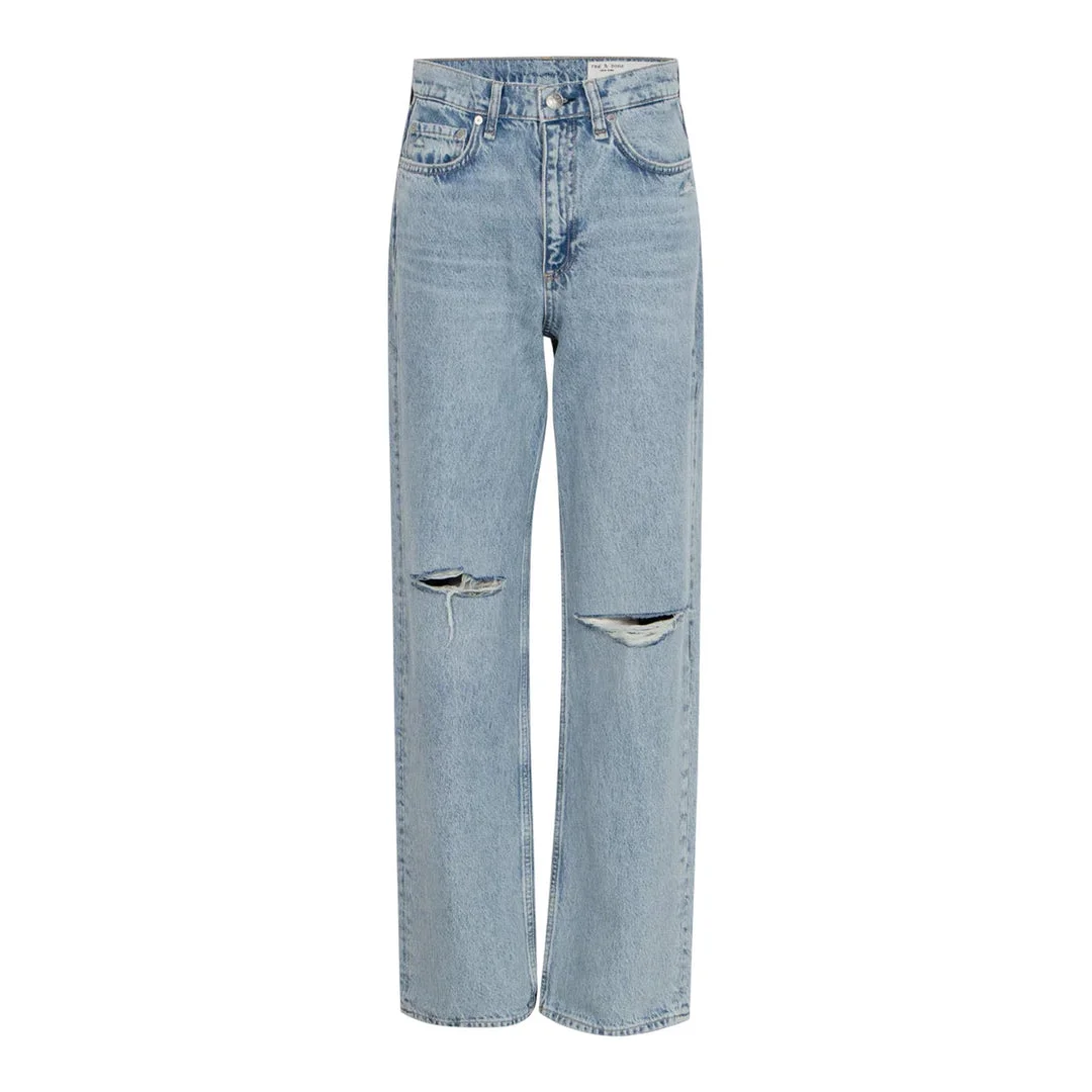 300048059LBL-23 / P5WDD25P1006RGCH/00/CALHE - High-rise waistband - Relaxed straight-leg fit - Distressed knee details - Five-pocket styling - Button fly closure - Premium cotton denim construction - Light blue wash The rag & bone Shea High-Rise Relaxed Straight Jeans deliver contemporary denim styling with effortless sophistication and versatile wearability. Crafted from premium cotton denim in classic light blue wash, featuring distressed knee details and a comfortable relaxed straight-leg silhouette. The high-rise waistband and modern fits create a flattering profile that transitions seamlessly from casual to elevated looks.