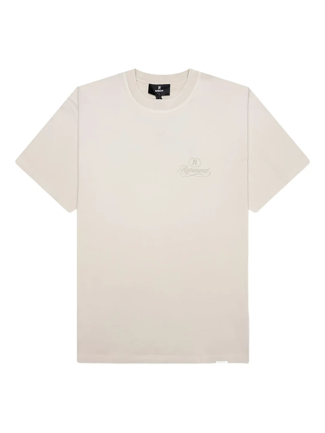 Represent Gran Cru Classe T-Shirt Introducing the Grand Vintage T-Shirt in Champagne, crafted from a new 220gsm fabric designed to feel cooler to the touch. With a standard oversized fit, this tee features tonal Grand Cru branding front and back, mirroring the design of the Grand Vintage Hoodie. Finished with a Represent metal bar at the hem and treated with a garment dye for a soft vintage look.