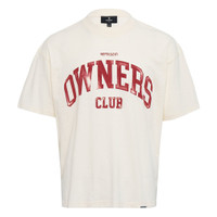 600079110CRM00L / OCM100047/00/BUTTERCREAM - Soft cotton jersey construction - Crew neck collar - Short sleeves - Front varsity-style graphic print - Relaxed fit - Ribbed neckline REPRESENT Owners Club T-Shirt delivers premium streetwear with collegiate-inspired graphics and contemporary styling. Crafted from soft cotton jersey in clean cream with bold red varsity lettering, featuring the signature Owners Club branding. The relaxed fit and premium construction create an elevated casual piece for modern streetwear enthusiasts.