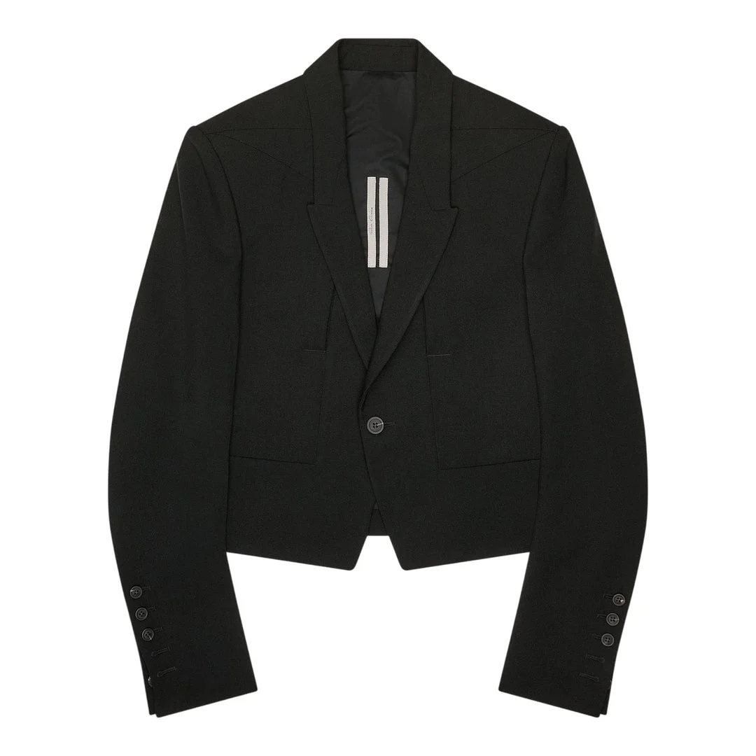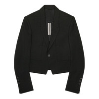 300048962BLK-40 / P5RP02E4757/WGP/09 - Single-button closure - Notched lapels - Cropped silhouette - Functional sleeve buttons - Grain de poudre wool construction - Structured shoulders - Tailored fit Rick Owens Alice Jacket delivers avant-garde tailoring with architectural construction and minimalist sophistication. Crafted from premium grain de poudre wool in deep black, featuring sharp shoulders and a cropped silhouette that defines the brand's signature aesthetic. The structured blazer construction and clean lines create a bold statement piece for contemporary wardrobes.