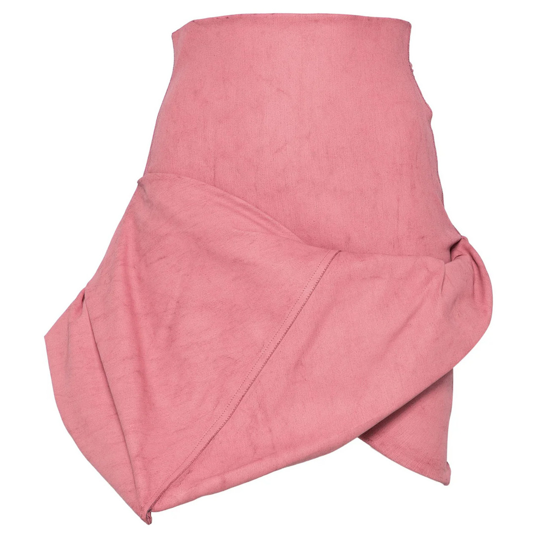 Rick Owens Draped Mini Chalk Stretch Denim Skirt This lightweight stretch denim is covered with a matte dry chalk coating. The indigo and structure of the denim shines through the color of the coating, creating multiple layers and irregular colors.
