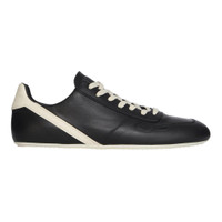 600071476BLK043 / RU02E1889/LCO/911 - Full grain cow leather upper - Contrast cream leather accents - Lace-up closure with flat cotton laces - Padded collar and tongue - Leather lined interior - Rubber outsole with grip pattern - Low-top silhouette - Signature Rick Owens proportions Rick Owens Minimal Sneak delivers avant-garde luxury with architectural silhouette and premium construction. Crafted from full grain cow leather in sleek black with contrasting cream accents and signature Rick Owens proportions. The streamlined profile and artisanal leather work create a statement sneaker that bridges high fashion and contemporary streetwear.