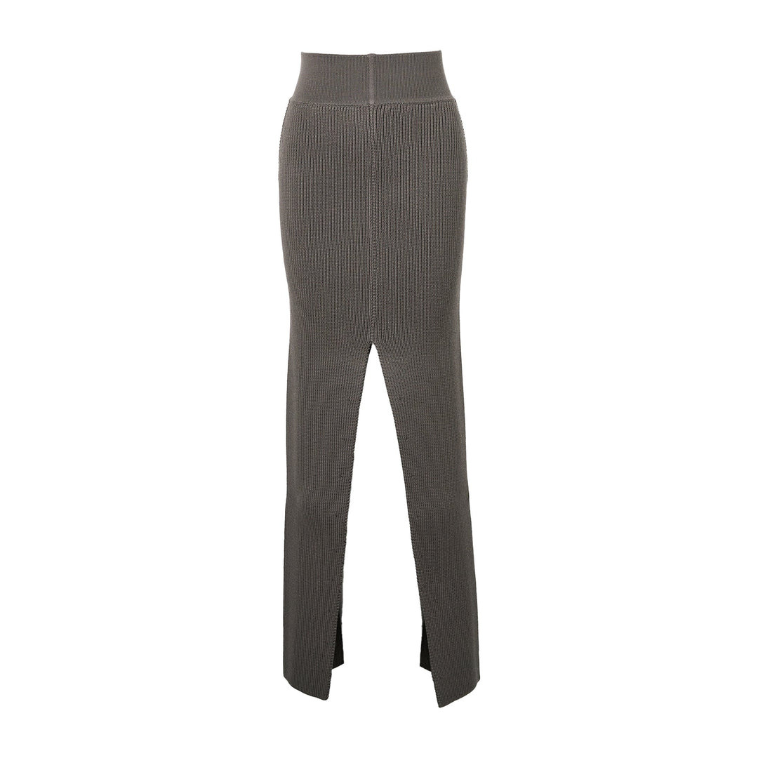 600071250CHA00S / RO02E4671/KWVH/78 - High-waisted design - Ribbed wool knit construction - Front center slit detail - Elasticated waistband - Bodycon fit - Full length silhouette Rick Owens Short Sliced Skirt delivers avant-garde elegance with architectural design and premium wool construction. Crafted from ribbed wool knit in sophisticated charcoal gray, featuring the brand's signature deconstructed aesthetic with front slit details. The high-waisted silhouette and minimalist structure create a striking statement piece for contemporary wardrobes.