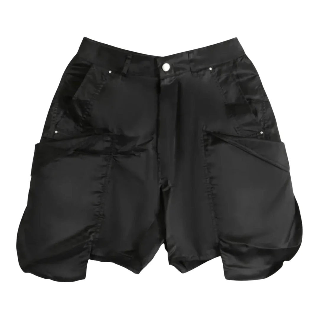 600071225BLK025 / RP02E4312/K/09 - Button and zip front closure - Cargo pockets on sides - Relaxed fit through thigh - Cupro twill construction - Mid-thigh length - Elasticated back waistband Rick Owens Stefan Cargo Shorts deliver avant-garde functionality with architectural silhouette and utilitarian design. Crafted from premium cupro twill in deep black, featuring cargo pockets and signature relaxed proportions. The fluid drape and deconstructed aesthetic create a bold statement piece for contemporary streetwear wardrobes.